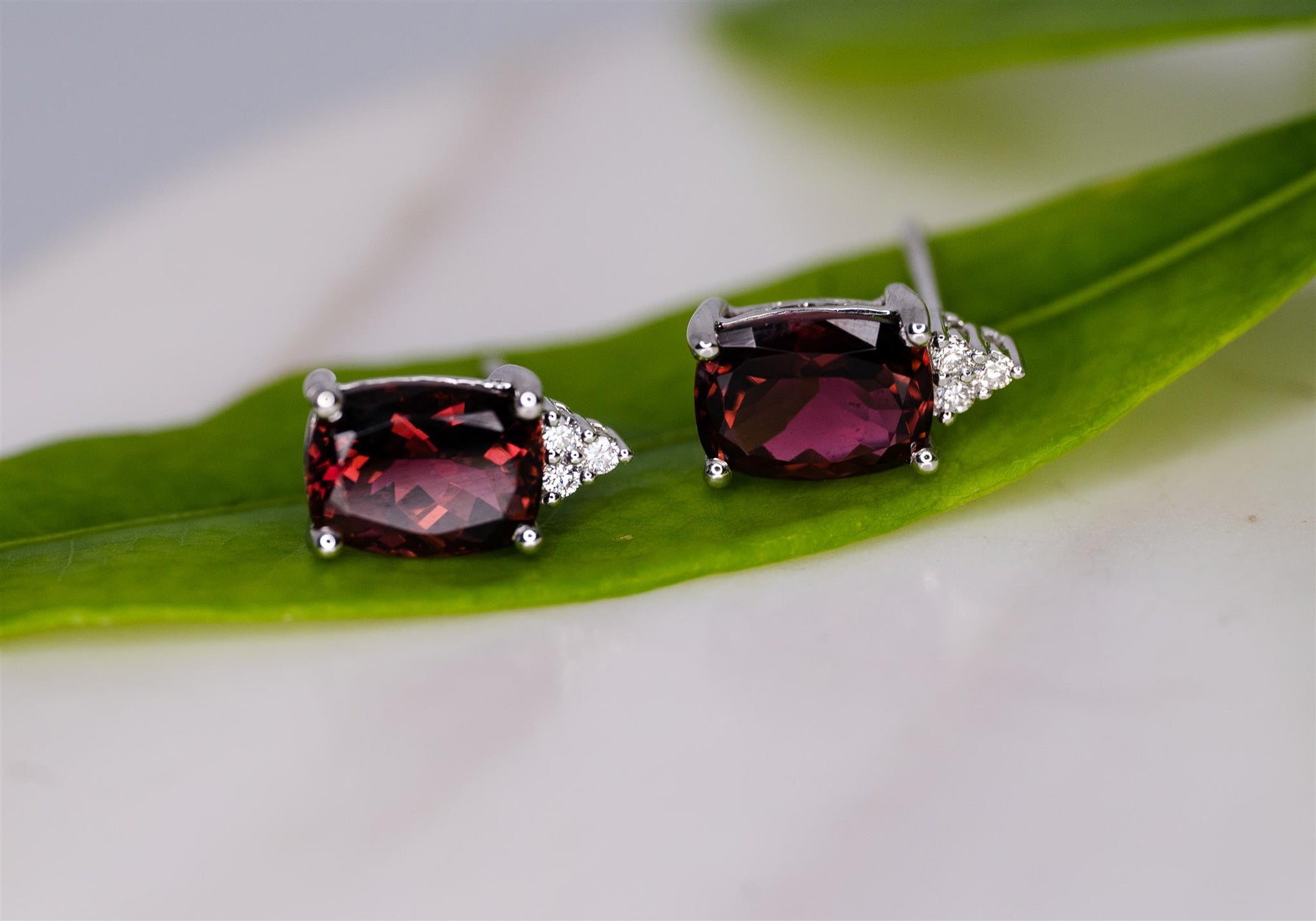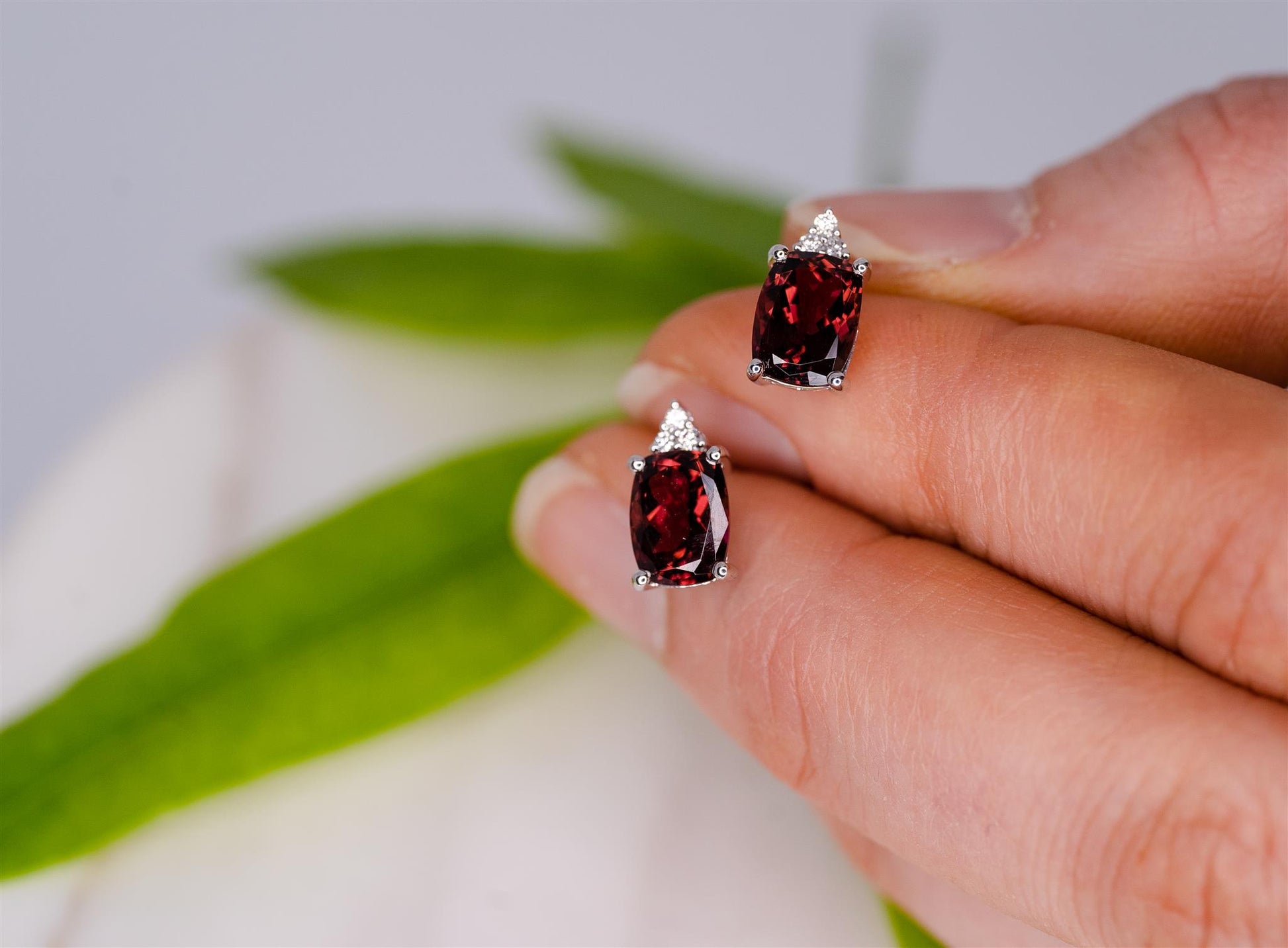 14K White Gold Cushion Shaped Tourmaline and Diamond Studs