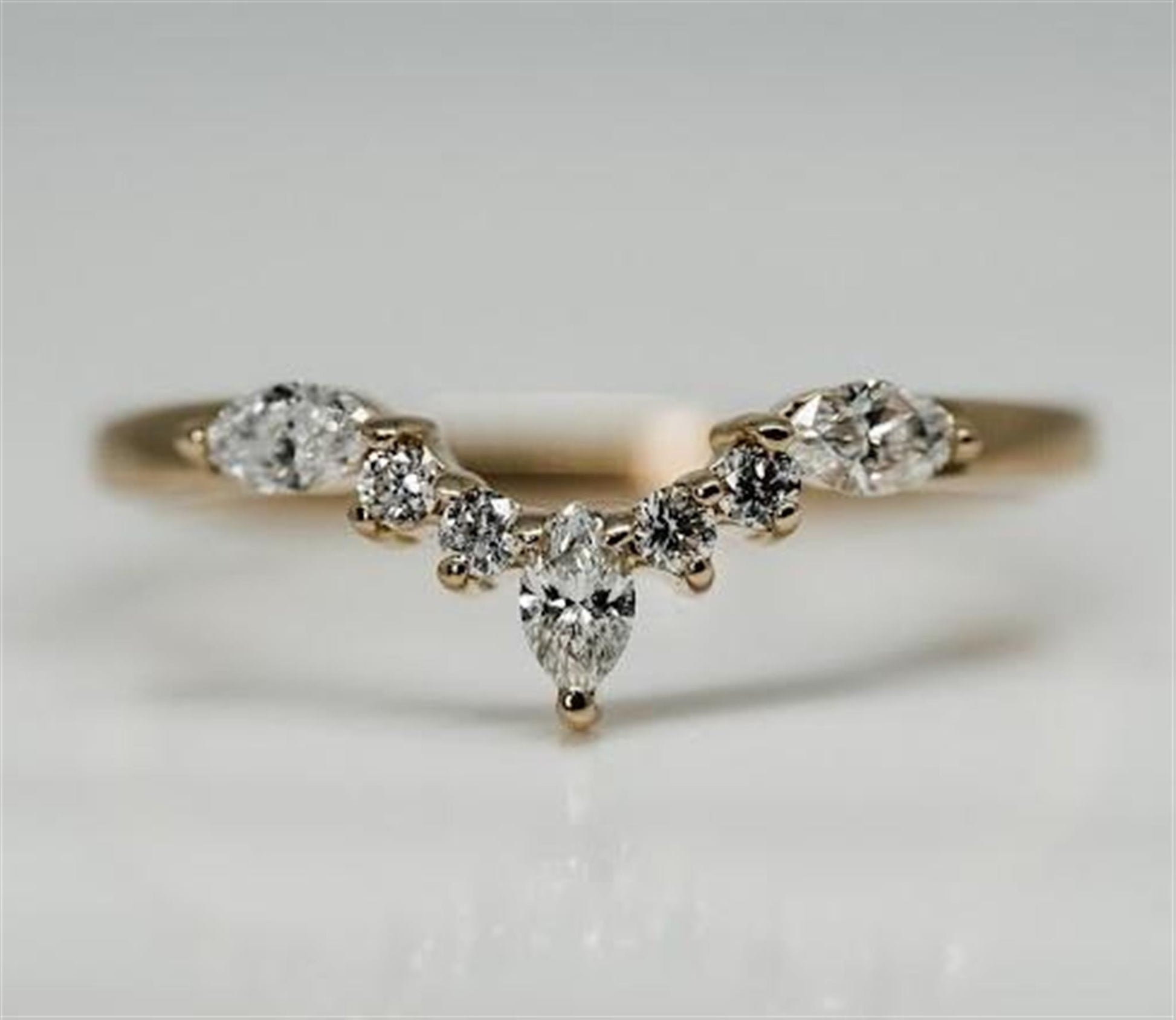 This is a 14K Yellow Gold 0.34tdw Diamond Wedding Band with a Slight Contour of a Marquise Diamond at the Points. This ring is a sz 7.
