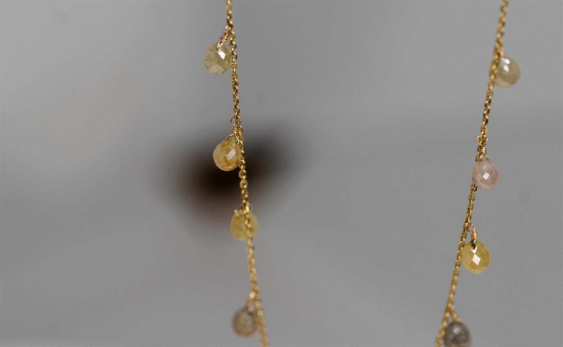 14K Yellow Gold Briolette Diamond 18" Necklace
