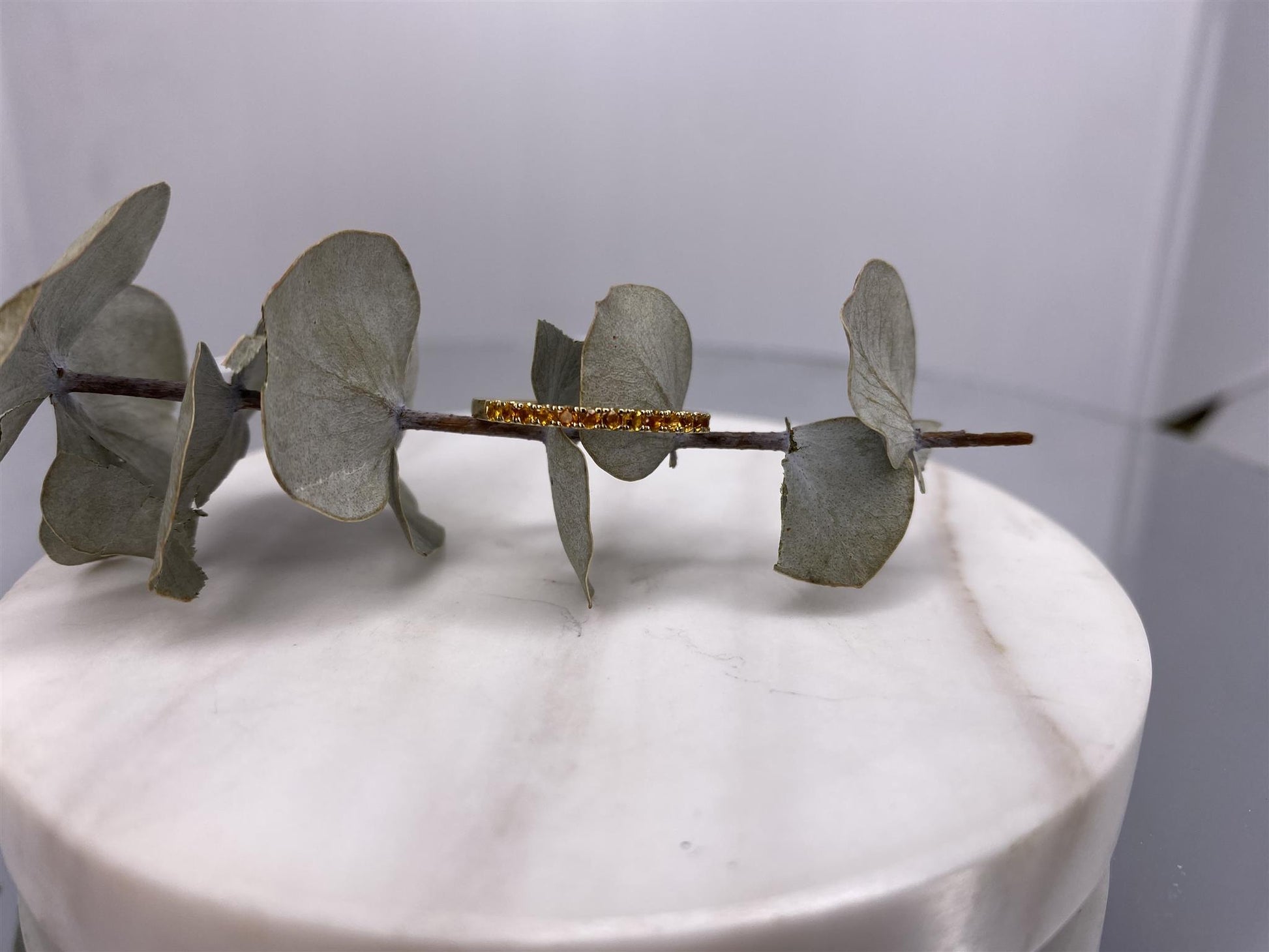 14k yellow gold straight band that has citrines weighing a total 0.18 carat.