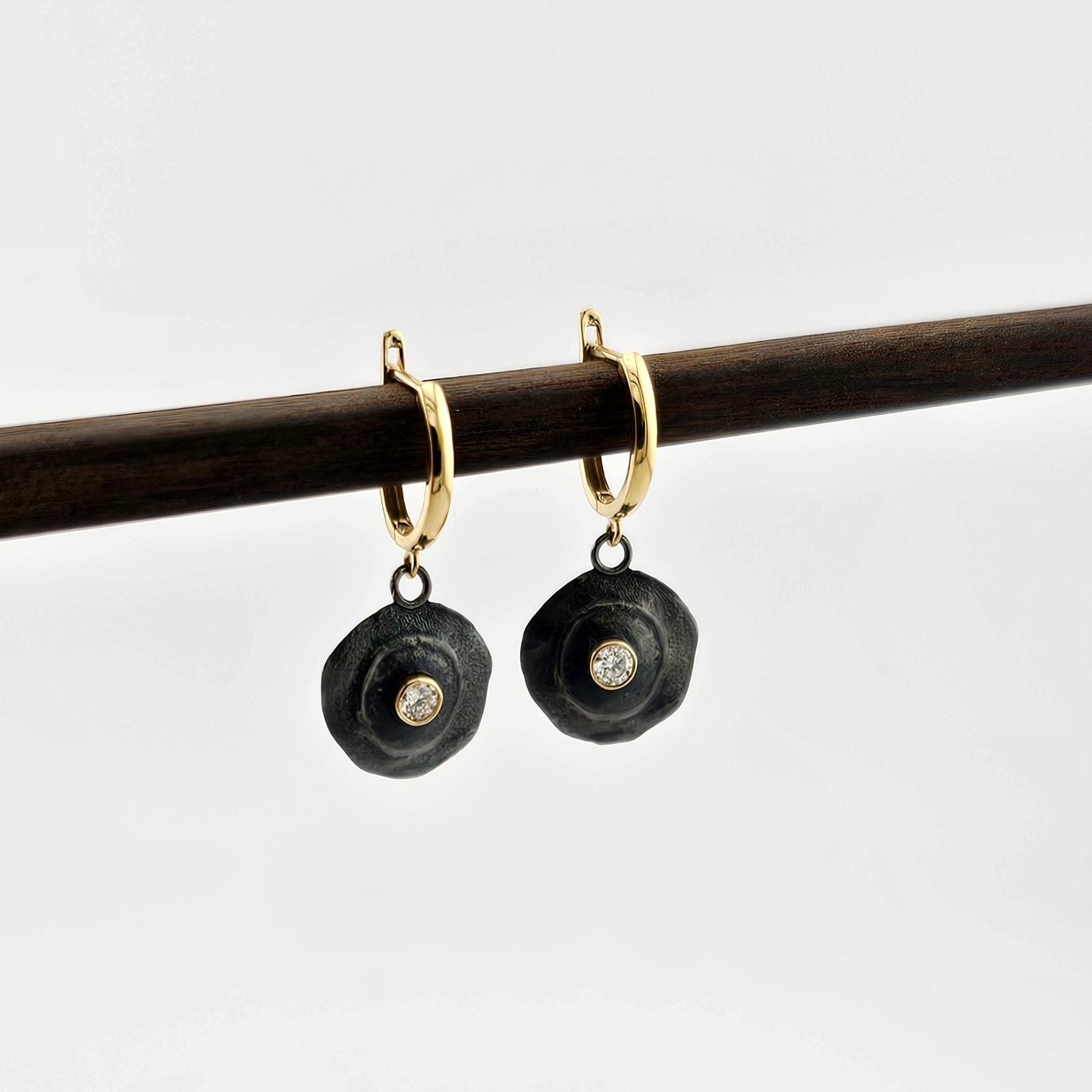 Unframed single bullet dangle earrings in your choice of Sterling Silver or 18K Yellow Gold, as well as your choice of stone inset in the center of bullet if you would like.