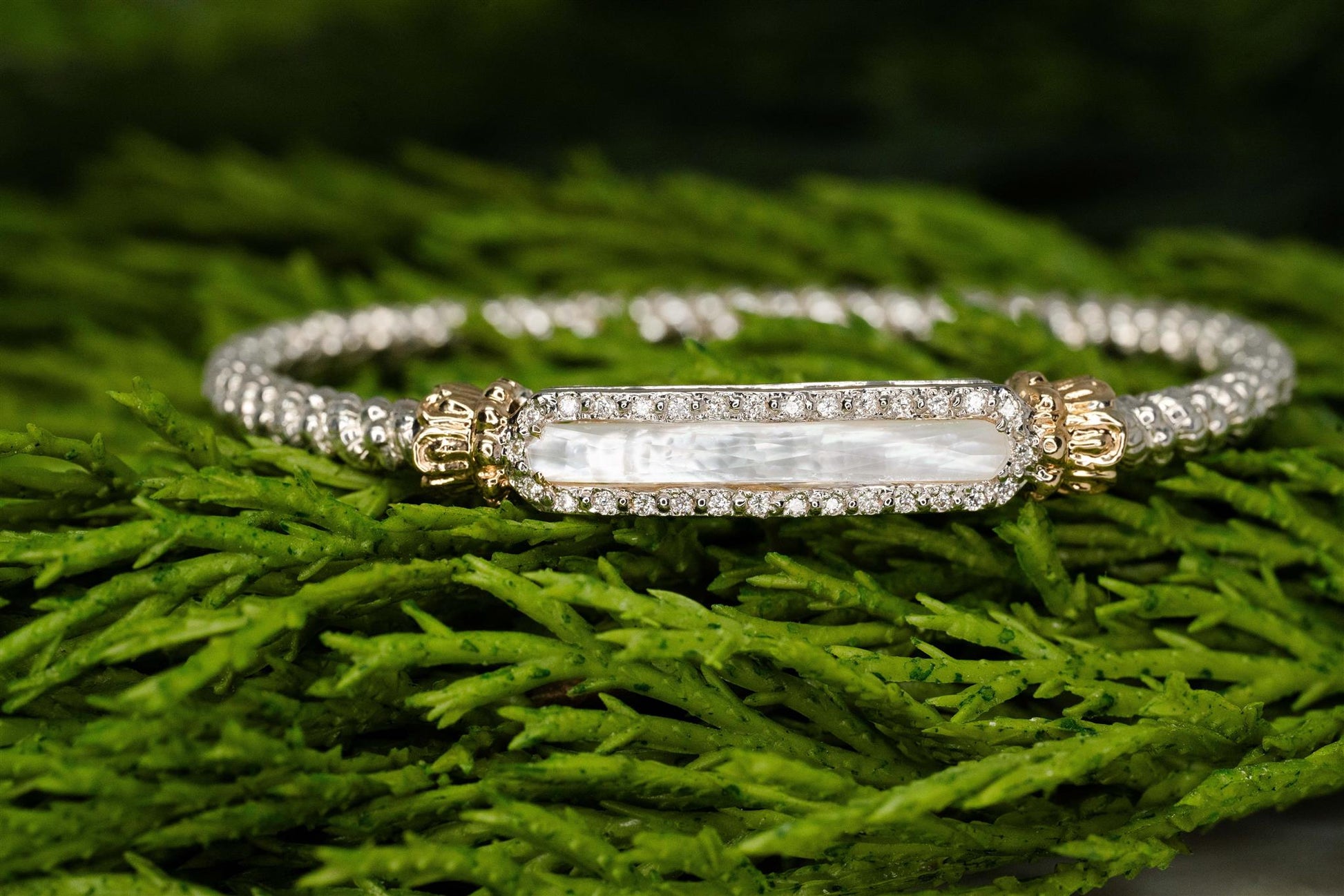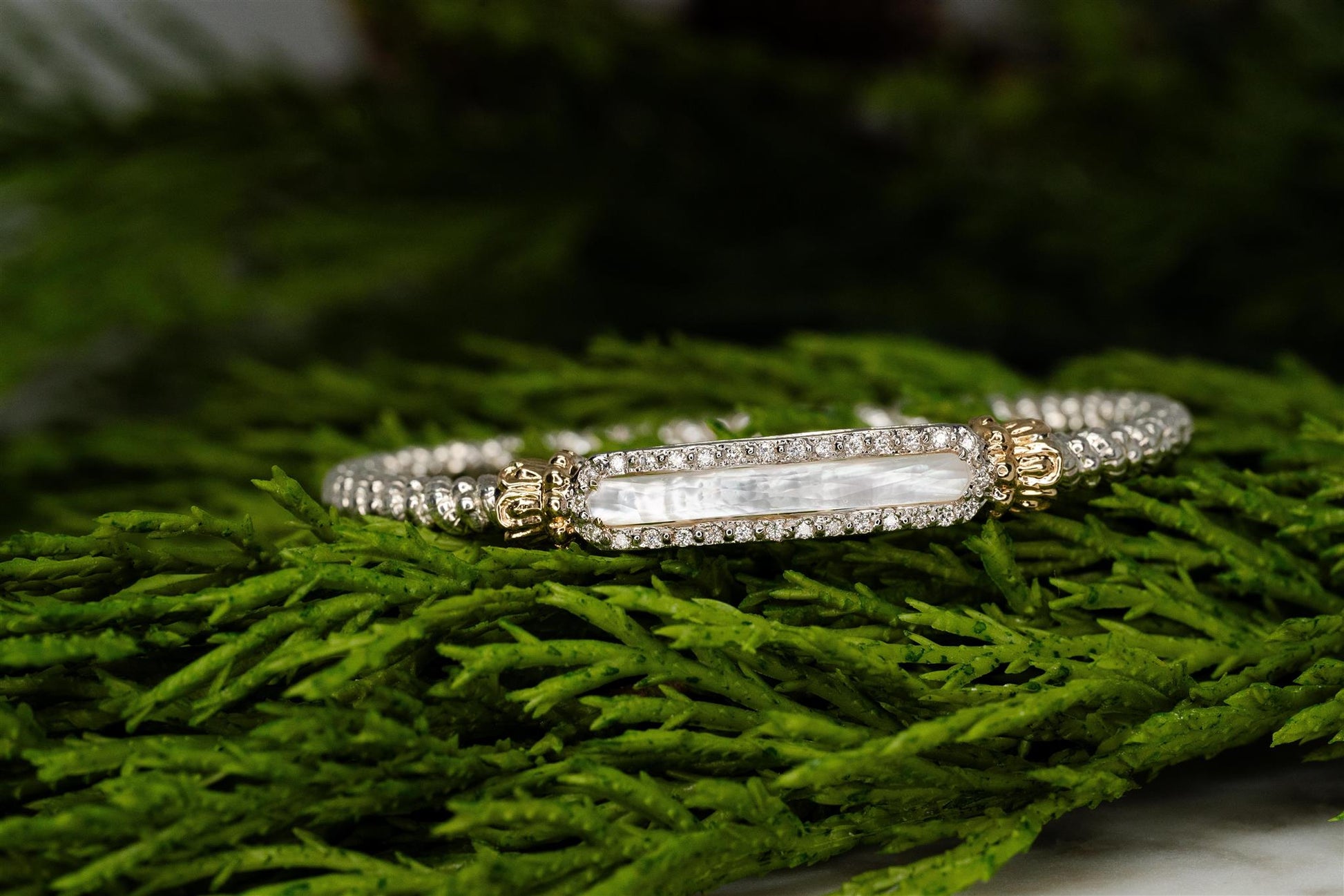 Yellow Gold and Sterling Silver Mother of Pearl and Diamond Bracelet
